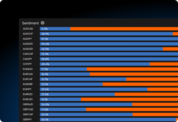 Track the real-time percentage of traders holding long and short positions. Instantly understand the mood of the market—for example, when 57.6% of traders are short on EUR/USD.