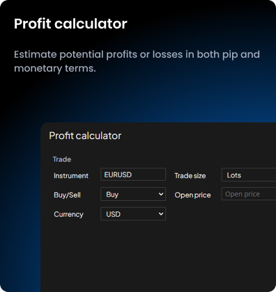 Quickly calculate pip value, margin, and potential profit or loss—all in one place. Input key trade details like lot size, entry and exit prices, and leverage to receive instant and precise financial insights.