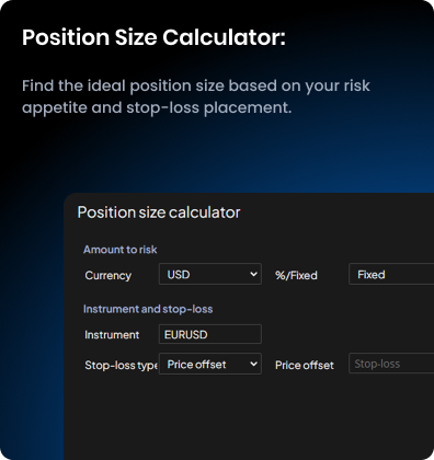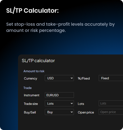 Plan your trades with confidence using the Stop-Loss and Take-Profit Calculator. Set your risk as a cash amount or percentage, and receive optimal SL and TP levels. The Risk-Based Volume Calculator ensures you never overexpose your capital.