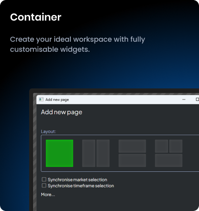 Switch between configurations effortlessly. Replace widgets without affecting layout, and maintain a streamlined, personalised trading environment at all times.