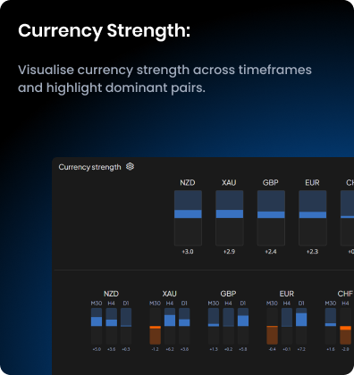Instantly identify the strongest and weakest currencies using a clear visual overview. Stay aligned with current momentum across the FX market.