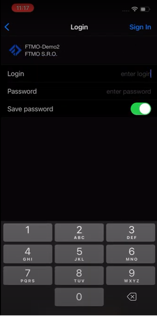 Po vyplnění přihlašovacích údajů se vám ve spodní části obrazovky zpřístupní možnost Sign In, klikněte na ní a můžete obchodovat.