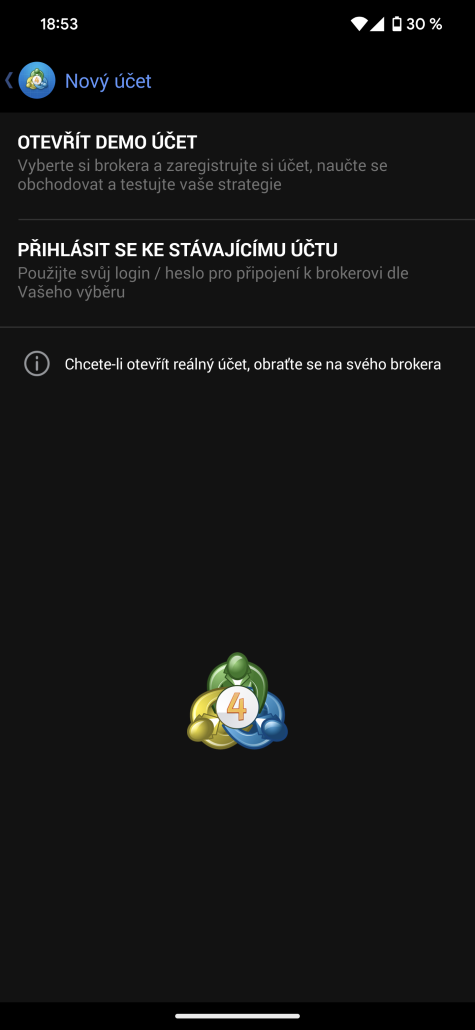 První přihlášení po stažení platformy MT4