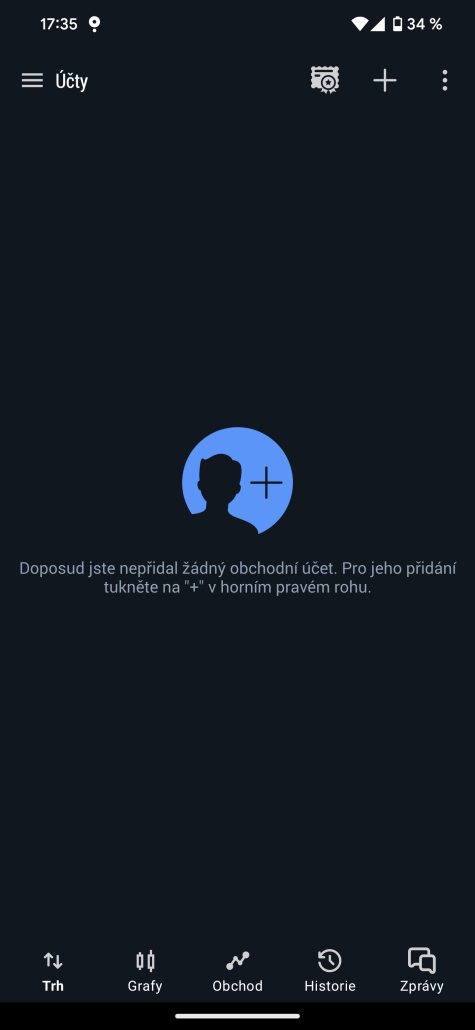 Na další obrazovce s nabídkou účtů v pravém horním rohu klikněte na znak plus.