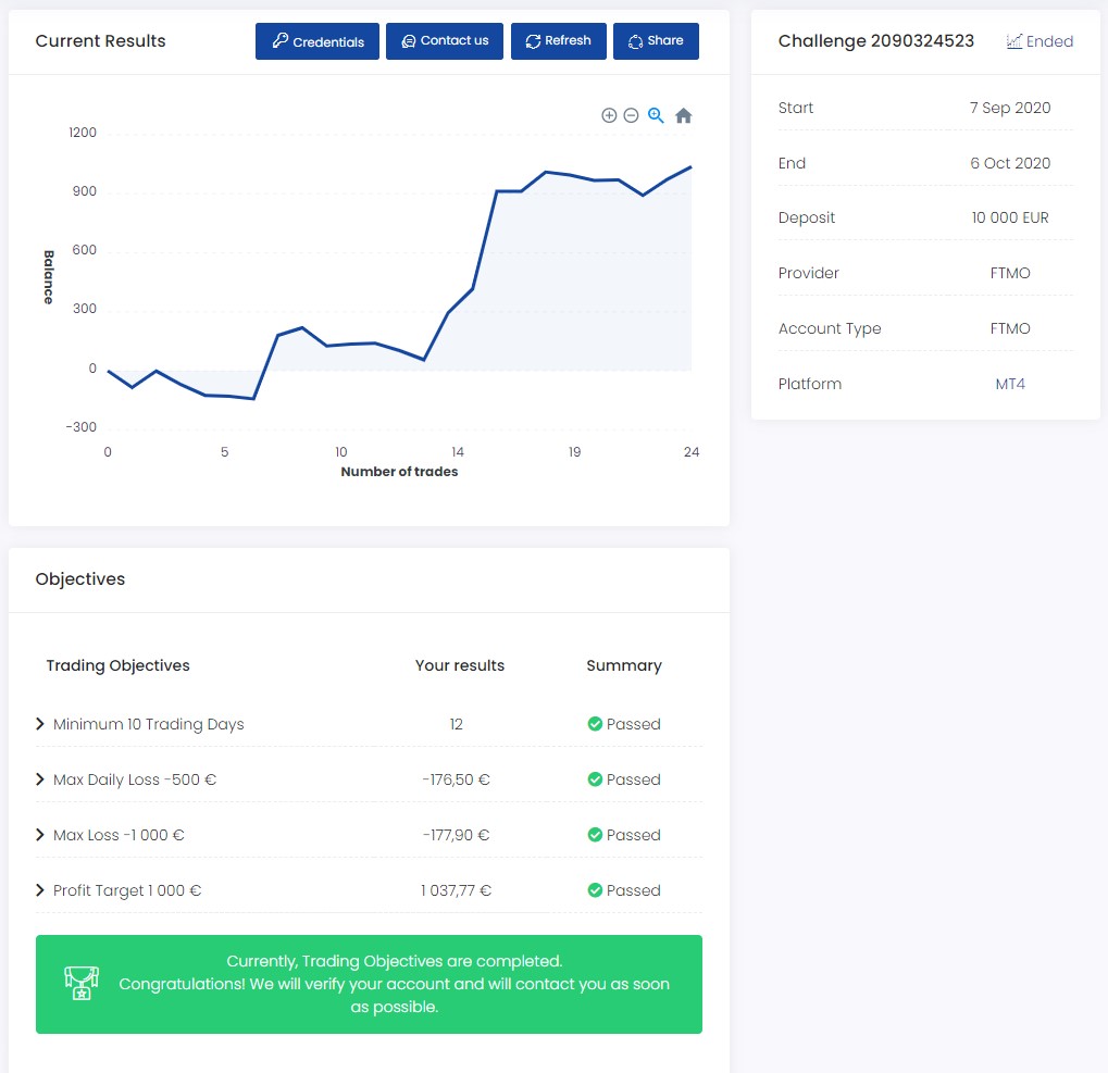 I've had a pretty good overall experience with FTMO's platform and their customer support. My performance on the challenge and verification stages came with some bumps in the road, but with perseverance and discipline, I was finally able to pass! My first attempt started the same week of the global shutdowns in March due to covid19 and that challenge attempt didn't go as planned to say the least. Never the less, after a few more attempts and with the market volatility calming down in some capacity throughout the summer, I was finally able to have my breakthrough. Customer support has been stellar throughout my whole process and they are on point in responding first thing the next business day. Great experience for me so far and highly recommended for all traders looking to have some additional capital!