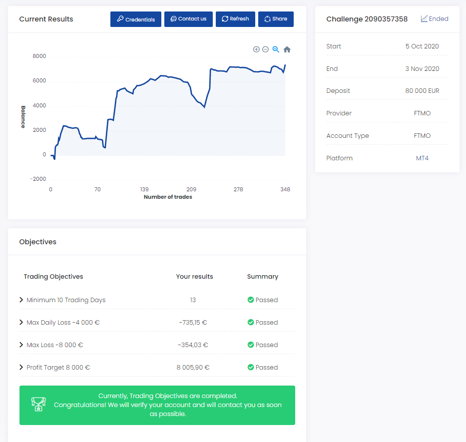 I personally thought that it would take me longer than a few weeks to reach 10% on the challenge however once I eliminated the idea of having a target and just stuck to my plan, I had hit the target before I knew it and I believe that’s how every trader should approach the challenge.