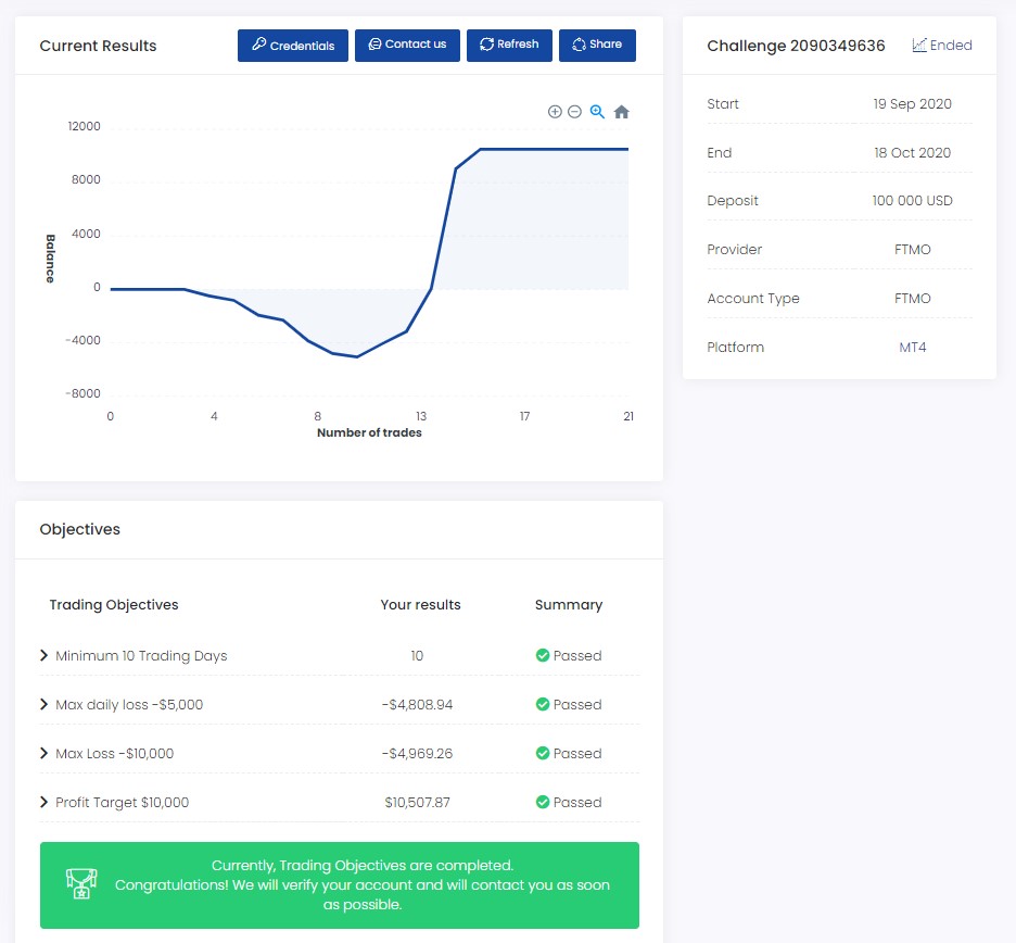 Make sure your strategy and risk management are good enough to adhere to the rules of the Challenge and Verification and trading objectives.