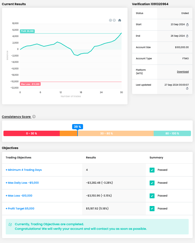 I found the FTMO Challenge to be a valuable experience that allowed me to test my trading strategies under real market conditions. The structured evaluation process helped me focus on my trading discipline and risk management.