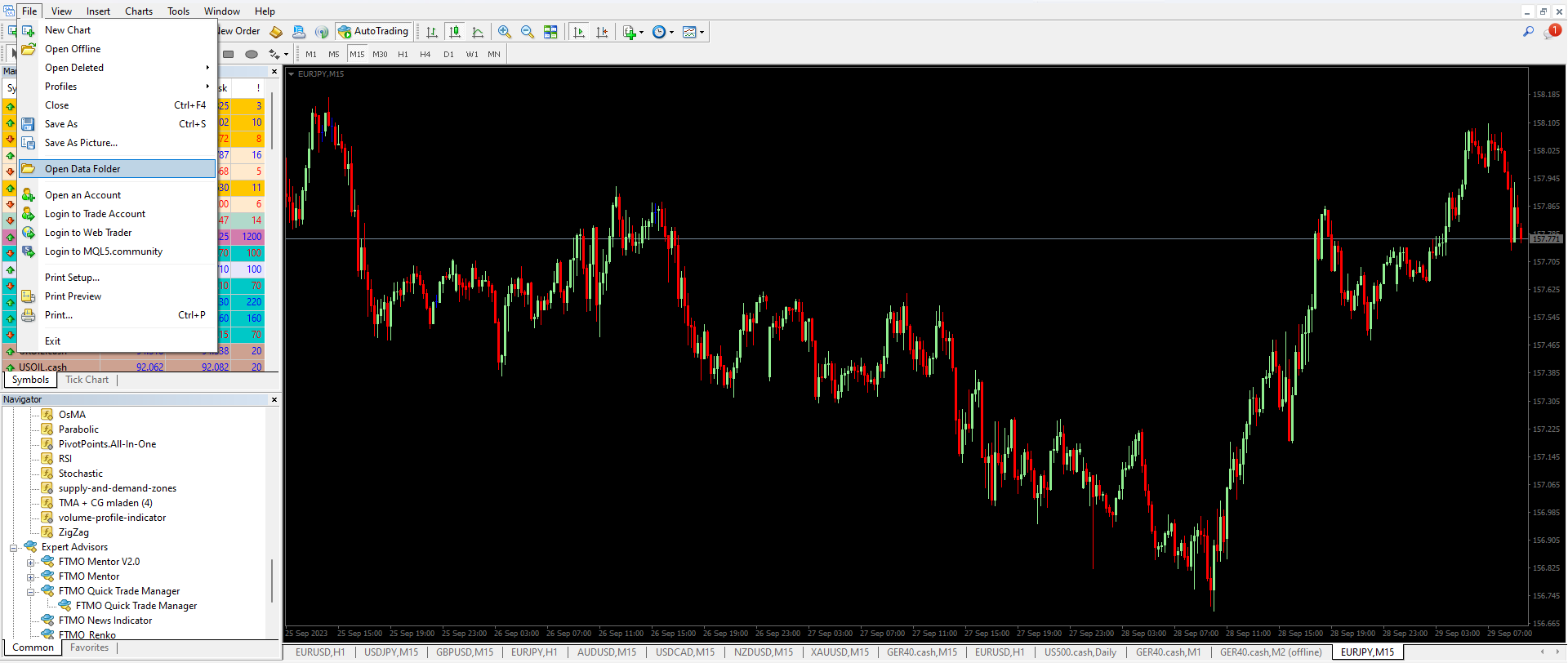 In it, you need to navigate to the Experts folder, where you copy the folder named FTMO News Indicator.ex4 from the Experts folder from the downloaded .zip file.