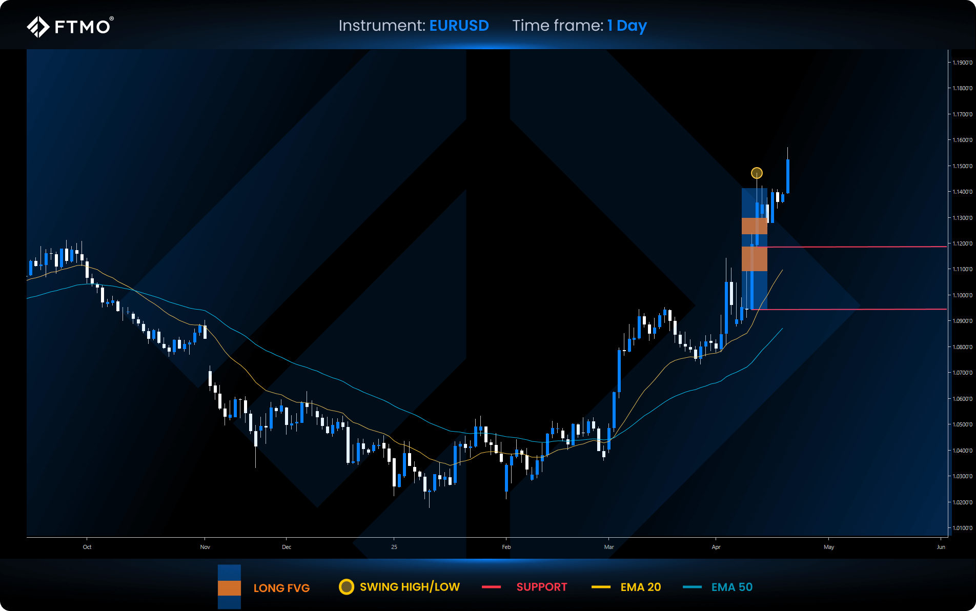 Market Context: EURUSD is currently trading at a yearly high, maintaining a strong bullish trend above the 20 and 50 EMA. Last week’s price action was in line with the prevailing trend, with a strong bullish close on Friday and a break above the recent swing high.