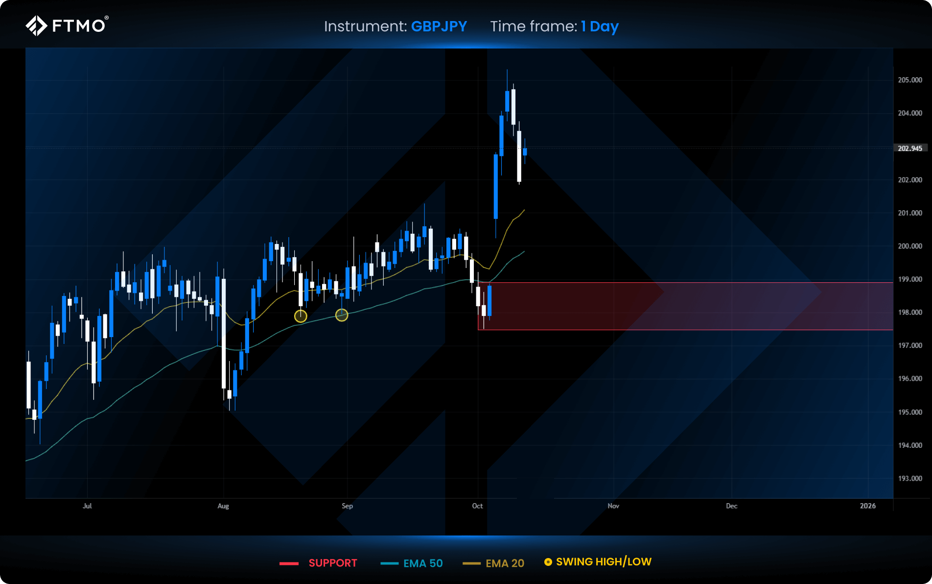 Market Context: GBPJPY is still reacting to the recent liquidity spike following last week’s overnight gap. Since the end of last week, price has been heading lower, creating an opportunity for a gap fill.