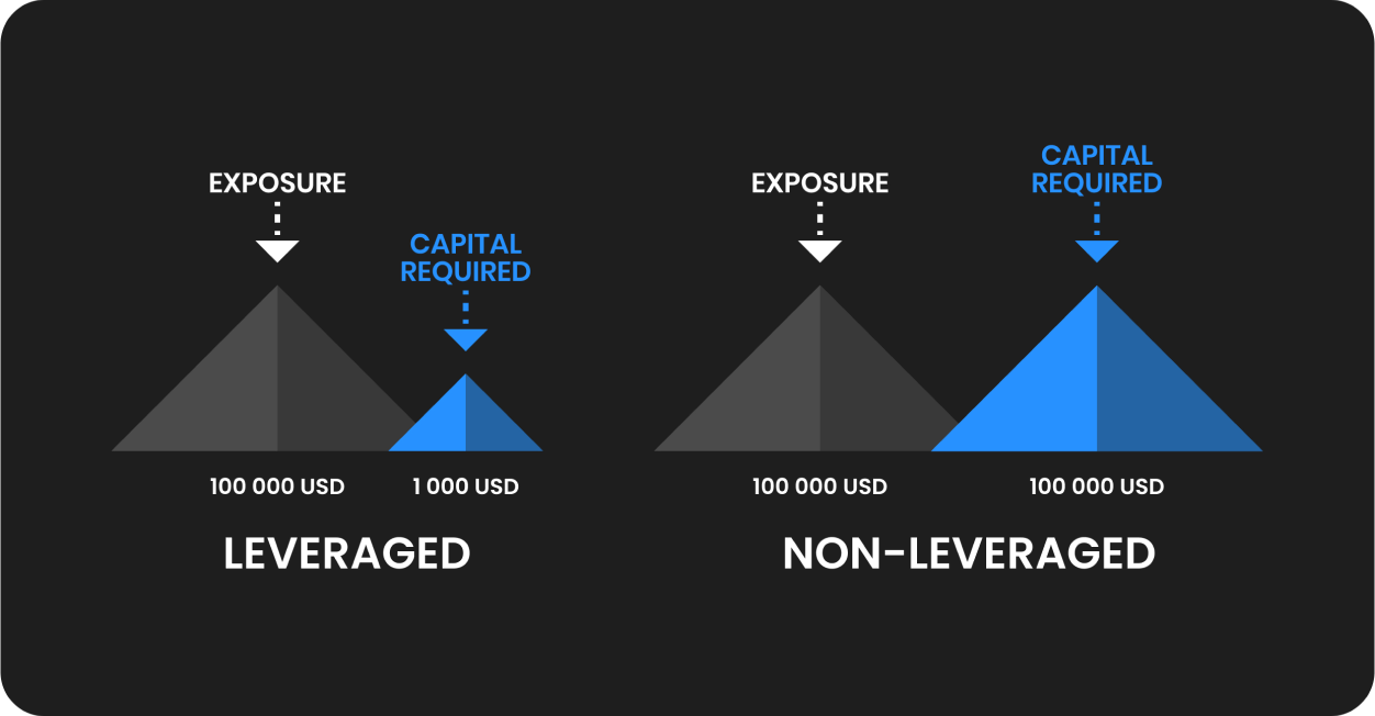Dans l'exemple ci-dessous, vous pouvez voir combien d'argent vous auriez besoin si vous deviez ouvrir un trade de 1 lot (unité de base) sur la paire de devises EURUSD. Sans effet de levier, vous auriez besoin de 100 000 $, alors qu'avec un effet de levier de 100:1, vous n'auriez besoin que de 1 000 $.