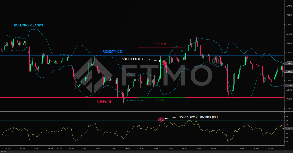 - - Vendita (short): quando il prezzo raggiunge il limite superiore del range (resistenza) e l'RSI è superiore a 70.