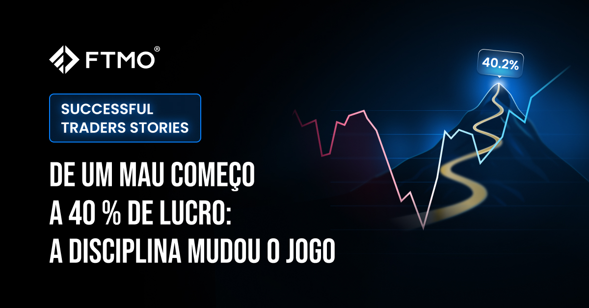 Nesta edição de Histórias de Traders de Sucesso, destacamos um trader que começou mal – perdendo 19 das primeiras 20 posições – mas nunca violou os Objetivos de Trading da FTMO. Catorze dias depois, fechou com $140.206,94 numa FTMO Account de $100.000, obtendo um resultado de +40,2%, impulsionado por um rigoroso controle de risco, um sólido RRR e uma execução decisiva no ouro.